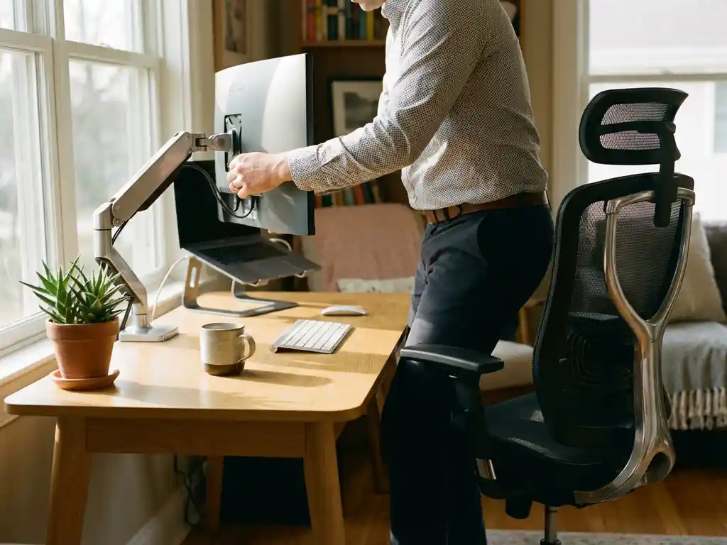 Thuiswerkplekken en kantooromgevingen verschillen aanzienlijk in ergonomische kwaliteit. Kantoren hebben meestal professioneel meubilair, verstelbare bureaustoelen en beeldschermen op de juiste hoogte, terwijl thuiswerkers vaak improviseren met keukentafels, gewone stoelen en laptops.