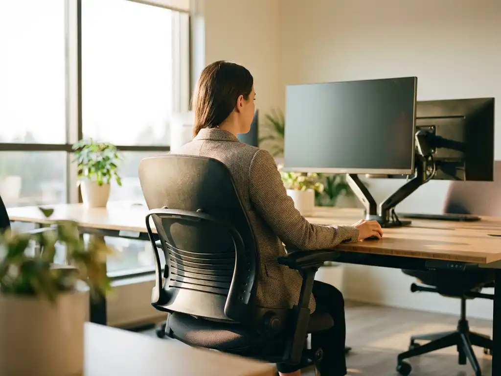 Verstelbare elementen zoals een kantelbare monitor, een in hoogte verstelbaar bureau en een draaibare stoel maken het verschil. Deze investeringen kosten enkele honderden euro’s, maar kunnen duizenden euro’s aan verzuimkosten door rugklachten voorkomen.