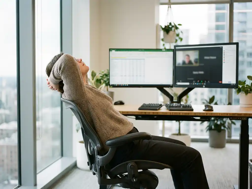 Tijdens werkpauzes focus je op specifieke probleemgebieden. Als je veel typt, doe dan elke twee uur hand- en polsoefeningen. Bij veel beeldschermwerk hebben nek- en schouderoefeningen prioriteit. Luister naar je lichaam en besteed extra aandacht aan gebieden die gespannen aanvoelen.